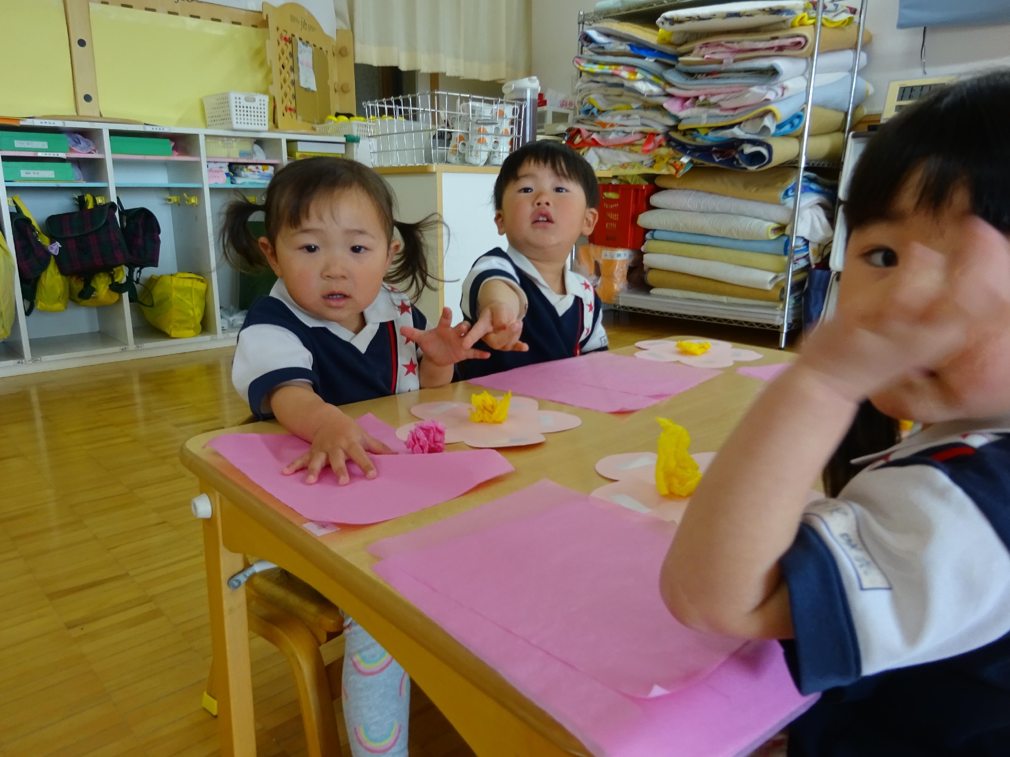 お花紙くしゃくしゃ楽しい~😊
