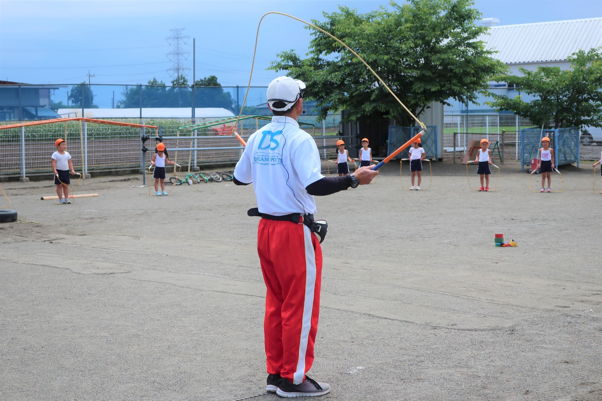 縄跳びの基本的な持ち方、縄の回し方の確認をした後、