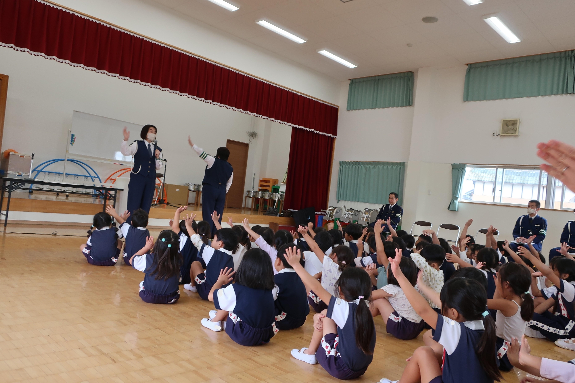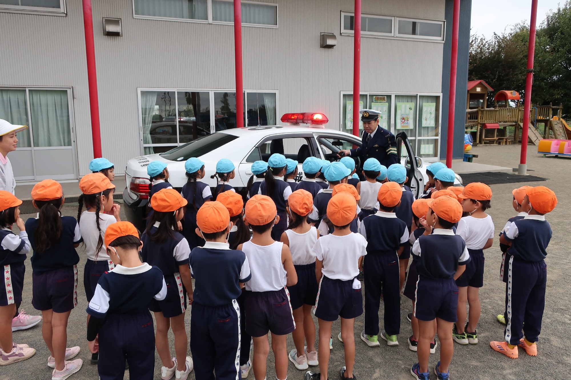 この後、パトカーにも乗せていただきました!(^^)!「おまわりさんになりたいなぁ!」という声がたくさん聞こえてきました(*^_^*)