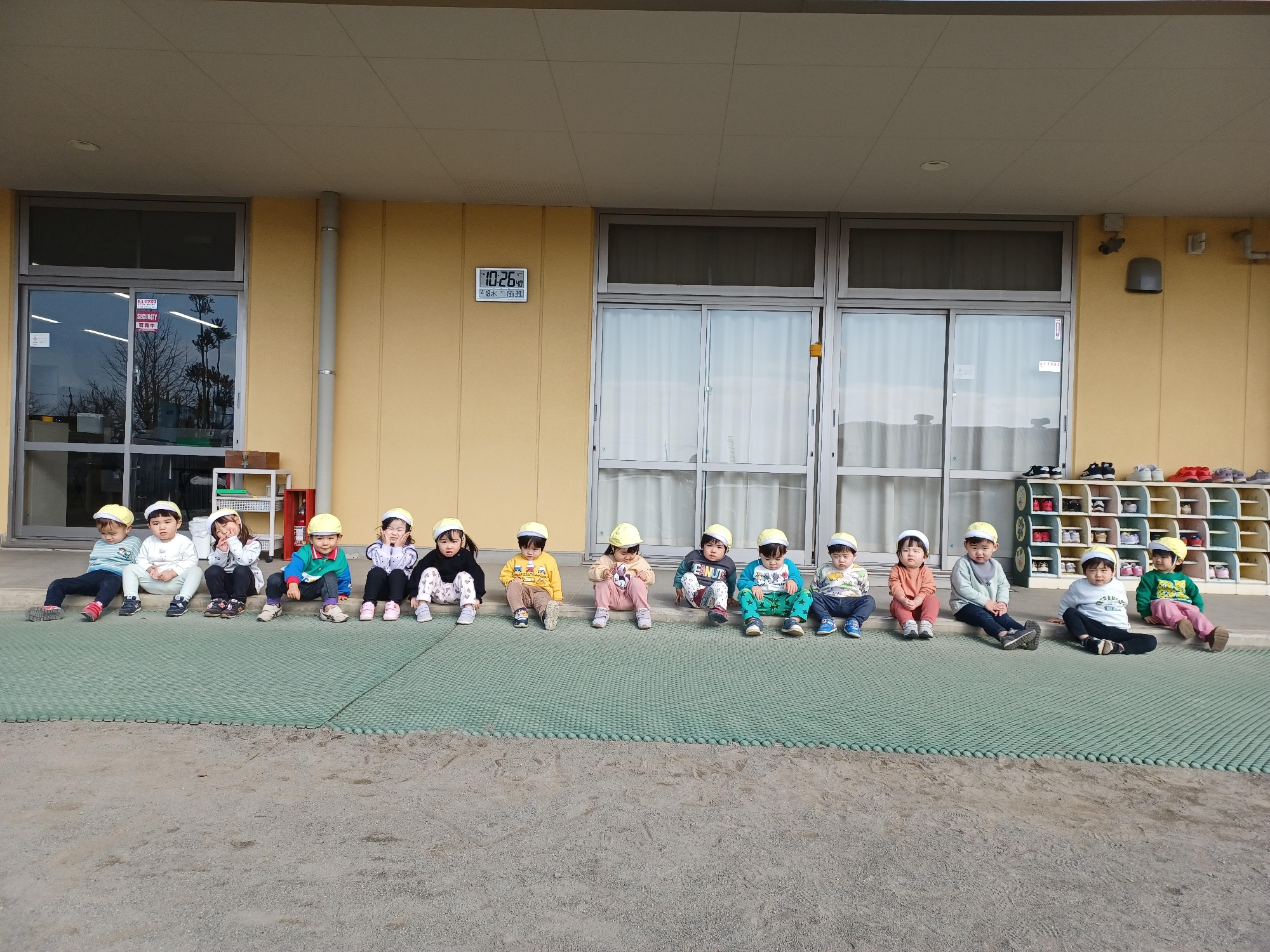 もも組のテラスで靴を履きました!自分で靴を履くのも上手になりました(^^)v
